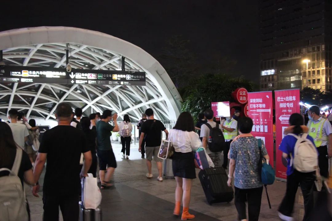 10月6日23時(shí)30分,深圳北站首次啟動(dòng)凌晨“公交+出租車”聯(lián)乘服務(wù),一直持續(xù)到凌晨3點(diǎn)末班高鐵到站。