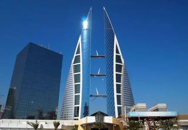 巴林世貿(mào)中心,是全球第一座利用風(fēng)能作為電力來源的摩天大樓。在兩座大廈之間設(shè)置了水平支持的3座直徑29米的風(fēng)力渦輪。風(fēng)電機組能夠支持大廈所需用電的11%-15%。
