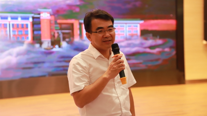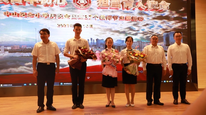 在座談交流環節中,謝志斌校長首先代表全體教師對各位領導的到來表示熱烈的歡迎和衷心的感謝,向與會教師代表逐一介紹了走訪慰問的領導,并結合2021年教師節主題“賡續百年初心,擔當育人使命”希望紀小教師堅定初心使命,弘揚偉大的建黨精神,切實擔當為黨育人為國育才的光榮使命;接著,全體與會人員一起觀看了紀小宣傳片《后學念前賢?鴻圖開新篇》;最后,梁克書記致辭,他指出:“中山紀念小學是新區第一所學校,從校園優美的環境、教師的精神面貌多方面可以看出,這里很好地繼承了中山精神,你們是新區教育事業的‘拓荒?!?,從孩子們朗朗書聲就可以知道,你們的努力奠定了新區教育事業的基礎,謝謝你們!作為新區第一所學校的教育工作者,你們要努力在這片熱土上揮灑熱血,把中山紀念小學創辦得更加美好,為新區教育事業做出貢獻!”