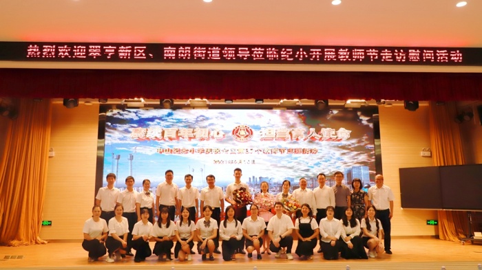 2021年9月10日上午,翠亨新區黨工委書記梁克,翠亨新區黨工委副書記、南朗街道黨工委書記葉新雄,翠亨新區黨工委副書記馮建文,南朗街道教育事務指導中心主任樊紹蘭等一行領導來到了美麗的中山紀念小學開展第37個教師節走訪慰問活動,向紀小的教育工作者致以節日的祝福和誠摯的問候。