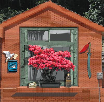安徽省六安市霍山縣諸佛庵鎮(zhèn)丙烯壁畫《窗前的杜鵑花》,中國美術(shù)學(xué)院繪畫藝術(shù)學(xué)院師生集體創(chuàng)作。 |